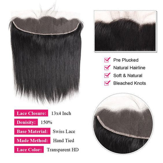 13*4 Hd Transparent Lace Straight Human Hair Frontal
