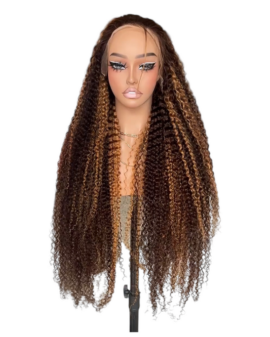 • 13x4 Brown curly full frontal lace wig