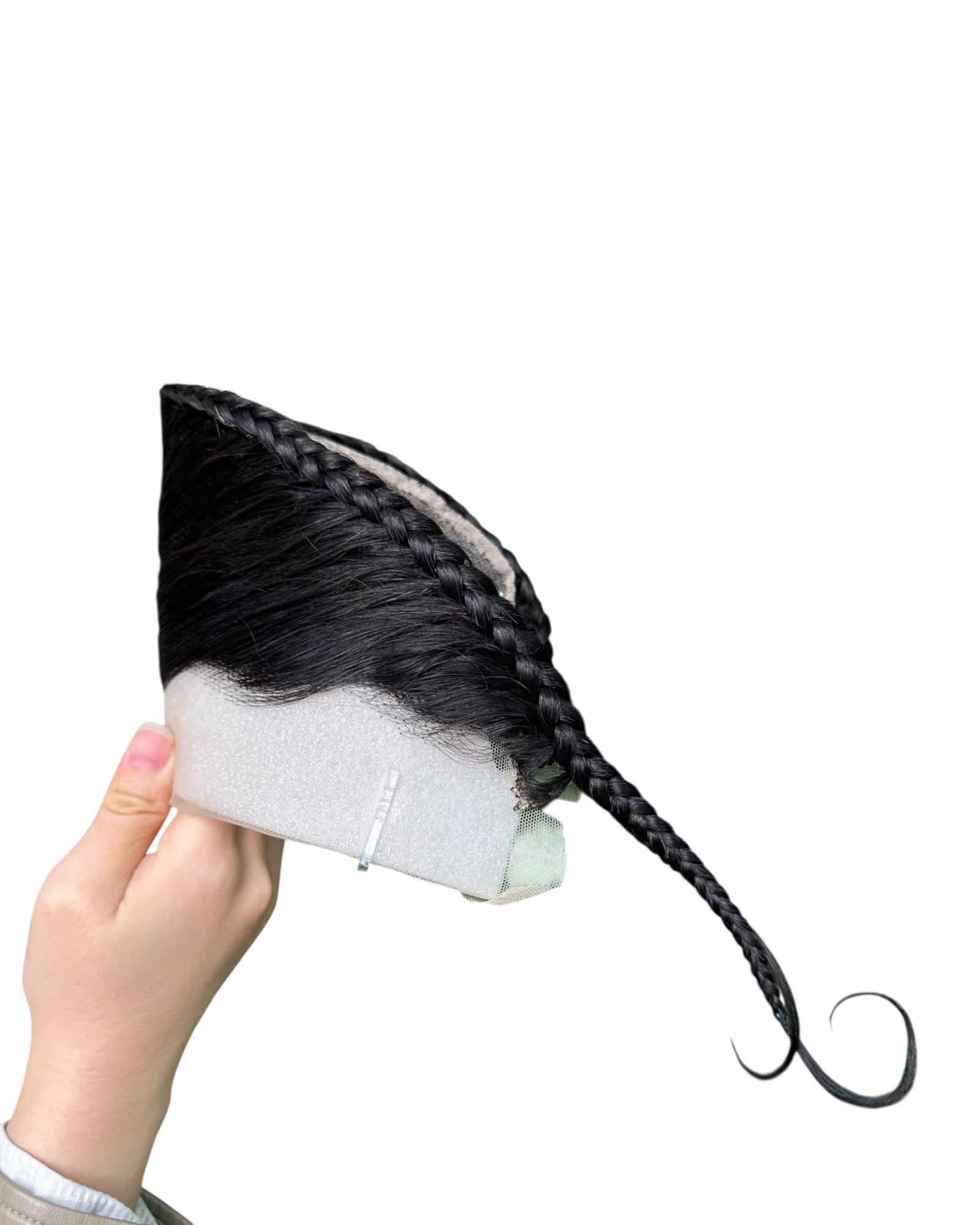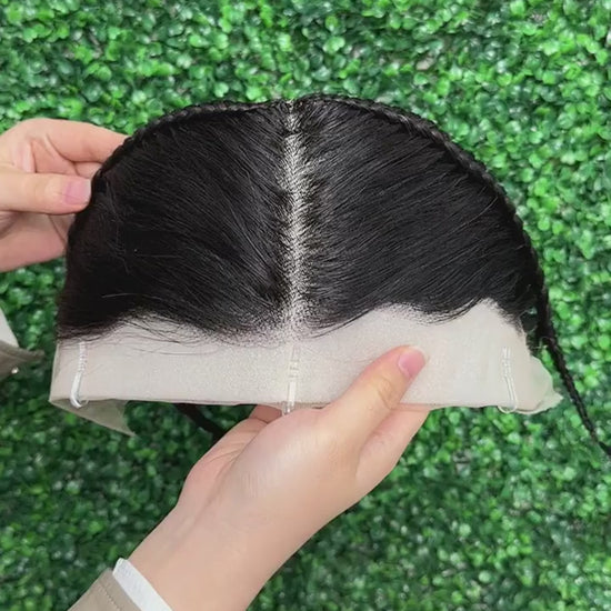 Experience the ultimate convenience and versatility with our 13*4 Transparent Lace Braided Topper Frontal Hairpiece. Made for turban, half wigs, and headband styles, this auto gele provides a seamless and natural look. Its transparent lace and braided design offers a comfortable and secure fit. Elevate your hair game now.